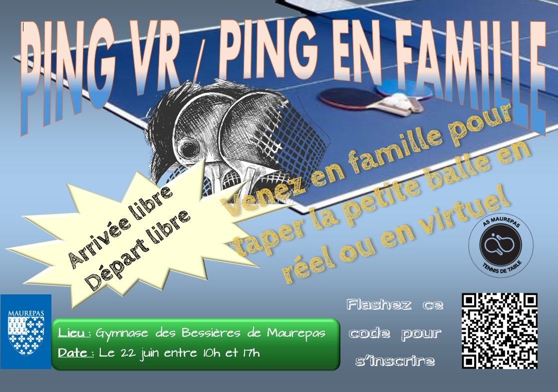 Le PING en FAMILLE se déroulera le dimanche 22 juin 2025 entre 10h et 17h, en salle polyvalente du gymnase des Bessières de Maurepas.