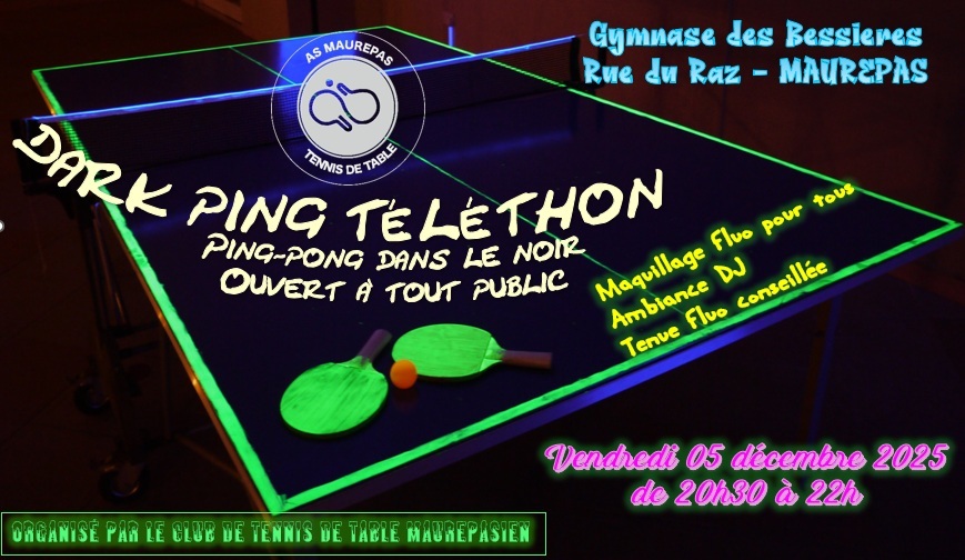 Le club de Tennis de Table de Maurepas organise sa 1ère soirée DARK PING ce vendredi 05 décembre de 20h30 à 22h00.